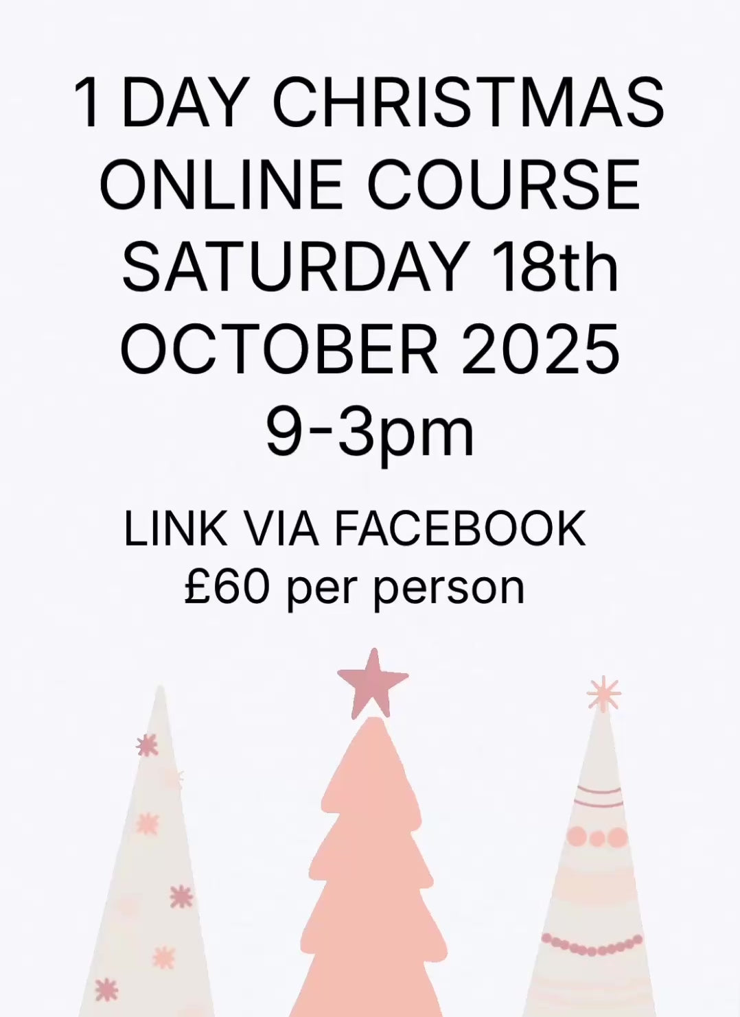 1 DAY CHRISTMAS COURSE - ONLINE VIA FACEBOOK SATURDAY 18th OCTOBER 2025 9-3pm