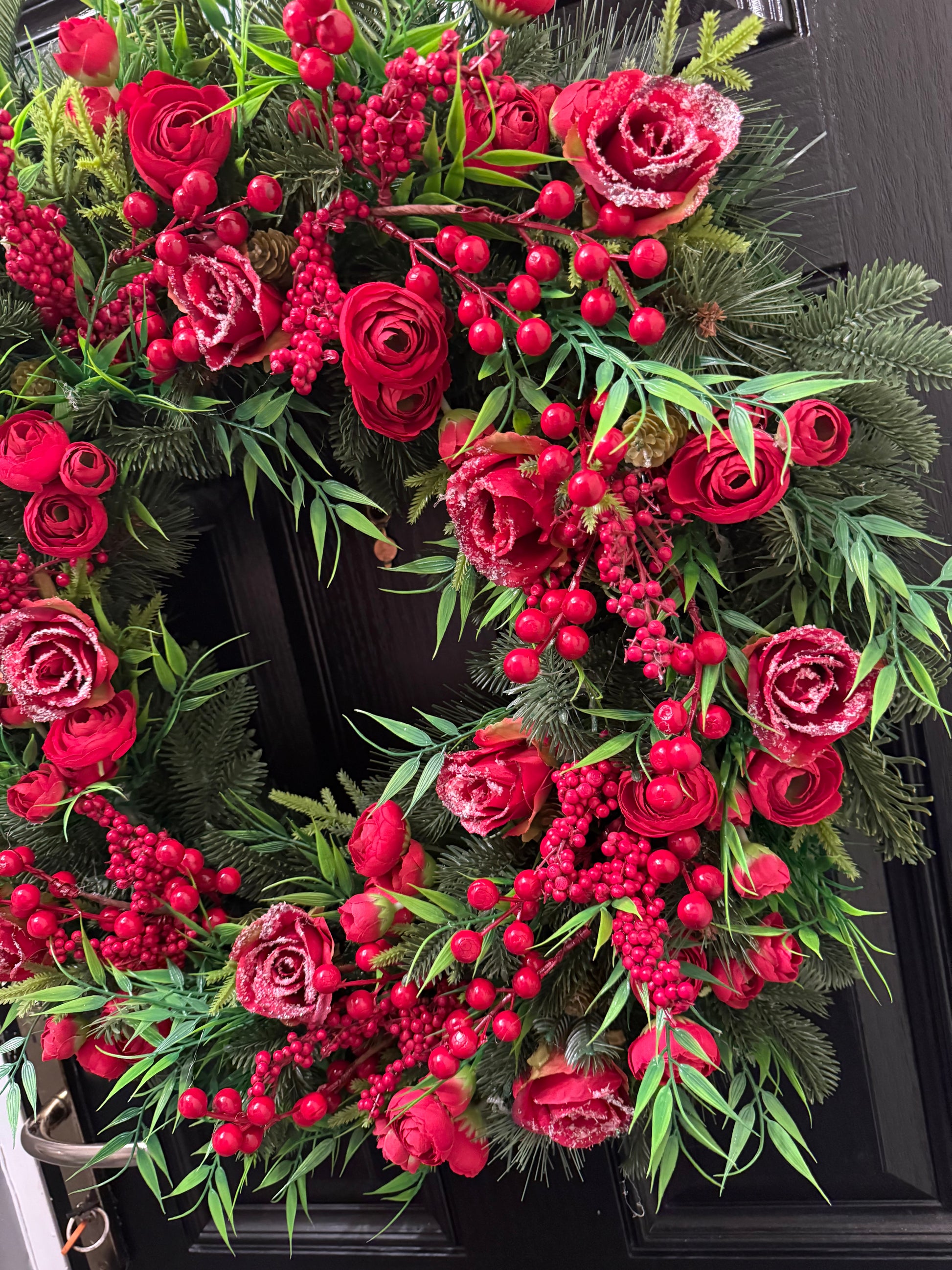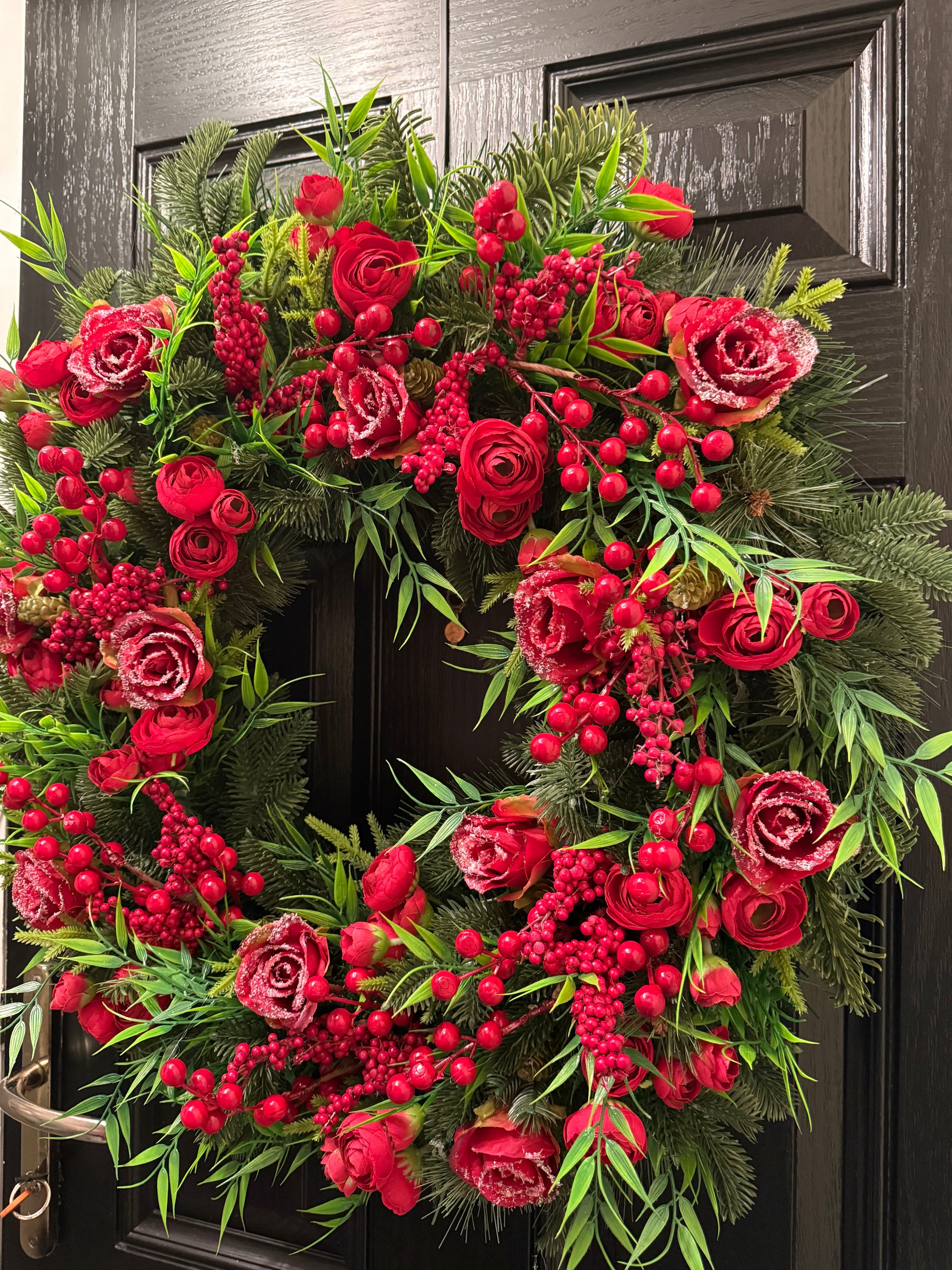 65cm SUPER DELUXE WINTER RED ROSE VERY BERRY FULL FOLIAGE WREATH